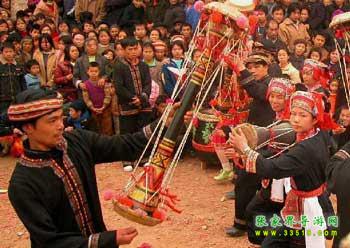 仗鼓舞是張家界市桑植縣白族獨有的一種民族舞蹈。 仗鼓舞以“仗鼓”作道具,與朝鮮族鼓舞有異曲同工之妙。 鼓長1.2米,兩頭大如碗口, 用皮革繃面, 中細可握,形如木杵。相傳南宋末天寶年間,有谷、王、鐘三姓兄弟在蒙將兀良合臺“寸白軍”服役,后“寸白軍”被遣散,三人即從云南大理流落至桑植定居。某年臘月,白族兄弟們正在打糍粑準備過年,一幫官兵突然圍寨抓人,白族人即用粑粑杵奮起反擊,將官兵打敗,白族人為慶賀這一仗的勝利,就以木杵作道具跳舞作樂,這便是仗鼓舞的由來。后來,白族人將粑粑杵改成鼓,配以笛子、嗩吶、大號和鑼、鈸、罄等鳴樂伴奏,同時創(chuàng)造了八十一套舞蹈動作,成為一種獨具風格的民間舞蹈。