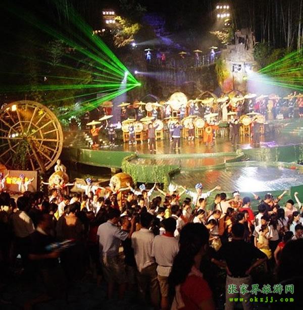 《武陵魂•梯瑪神歌》是一場(chǎng)記述土家族起源、演變、戰(zhàn)爭(zhēng)、生產(chǎn)生活等內(nèi)容的大型立體山水實(shí)景演出,揉合了音樂(lè)、舞蹈、文學(xué)等多種藝術(shù)形式,如幻如夢(mèng)的舞美燈光,搖曳生姿的原生態(tài)歌舞……濃縮了土家族數(shù)千年的發(fā)展歷史,400多名演員以自然淳樸的表演充分的展示了土家的民族文化特征,給游客帶來(lái)了耳目一新的感受。一場(chǎng)視聽的饕餮盛宴,一曲驚天地、泣鬼神的曠世古歌,給人山水文化光影視聽的享受?!境銎罚?a class="insidelink" target="_blank" title="張家界">張家界梯瑪神歌文化傳播有限公司】