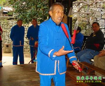 三棒鼓,唐代稱三仗鼓,明沈行符《顧曲雜言》 曰:“吳下何來有打三棒鼓乞錢者,余幼時有見之也, 起于唐咸通中(公元865年)”約于明代傳入本境, 并逐漸成為群眾增聞樂見的民間藝術(shù)形式。每年春節(jié) ,藝人們結(jié)伴走村竄寨拜年,表演對象不分貧富,戶 戶必到。如遇貧寒之家,表演者將別家贈送禮品相送 ,意在人人過節(jié)歡喜。充分體現(xiàn)出土家族人熱情好客 ,心地善良的民族性格,對加強民族團結(jié)有一定作用 。 三棒鼓通常由三至五人組成,一人擊鼓唱詞,一 人鑼鈸配樂,一人?;ò?。花棒三根,長一尺,舞者 左右手各持一根,將另一根拋在空中,左右開弓,擊 打空中花棒使之不落地。也有以刀代棒,以五刀代三 棒的技藝。技藝高強者,突然把刀拋得極高,來一個 眼花繚亂,不禁稱絕。打三棒鼓,通常有“鬧春耕” 、“收割打場”、“慶豐收”、“拜年節(jié)”四套,分 “鯉魚跳龍門”、“玉女穿梭”、“板巖漂灘”等項 目。打三棒鼓技巧性強,表演時需高度集中,用力適 當(dāng),貫通一氣,并與演唱者默默配合。