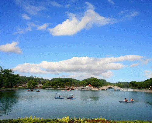 君山的竹子,更是奇異多姿,別有情趣。有點點紫斑、宛如淚痕的斑竹,有棱角方正的方竹,還有楠竹、紫竹、桂竹、龍竹、龜甲竹、梅花竹、圣音竹、連理竹等10余種,分布在十幾個山頭,占地500多畝,漫山遍野,堆綠疊翠。微風吹拂,細竹婆娑,發(fā)出切切私語;又如“湘靈鼓瑟”,娓娓動聽。故此前人留下了“碧玉森森綠水灣,鳳鳴環(huán)佩滿湘山”的詩句。尤其是一叢叢的斑竹,那迎風裊娜的身影,珠光點點的淚紋,更令人神思飛越,自然想起"蒼梧恨不盡,染淚在叢筠"的詩句。不僅僅斑竹有一段佳話,方竹、羅漢竹、圣音竹也各有傳聞,給君山島增添了無限的情趣。這樣,藍天的飛鳥,碧水的游魚,和隨風搖曳多姿的綠樹奇竹,構成了一幅生機勃勃的君山自然景觀圖。