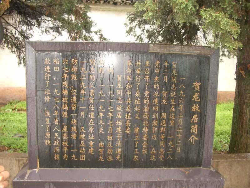為了紀(jì)念偉大的革命元帥。1977年省縣兩級(jí)政府撥款,賀龍故居按舊居原貌修復(fù)的。賀龍紀(jì)念館于1996年3月25日賀龍誕辰100周年之際竣工落成,大門上首的墨色大理石匾額上,是江澤民親筆題寫(xiě)的“賀龍紀(jì)念館”幾個(gè)燙金大字。。賀龍紀(jì)念館與賀龍故居、賀龍橋成犄角之勢(shì)。