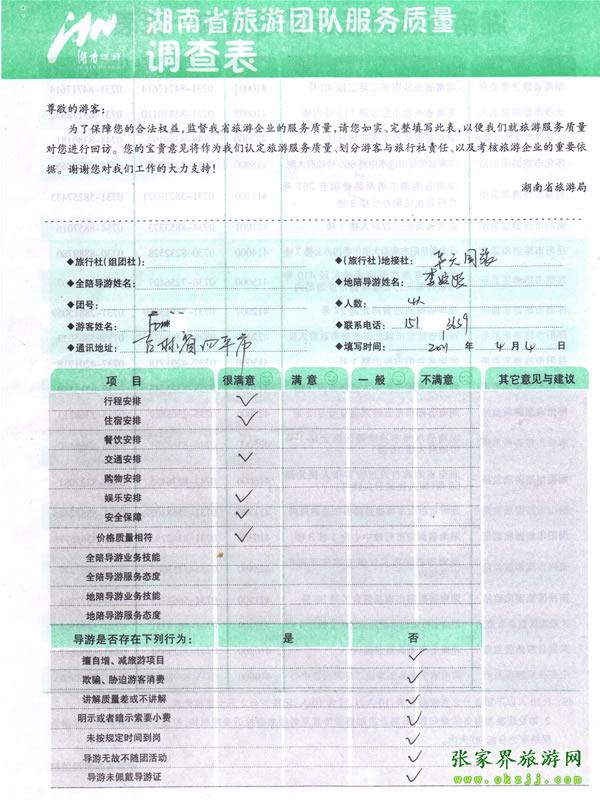 - 游客夏先生為表揚導游李姣姣寫來表揚信致我張家界... [14811]