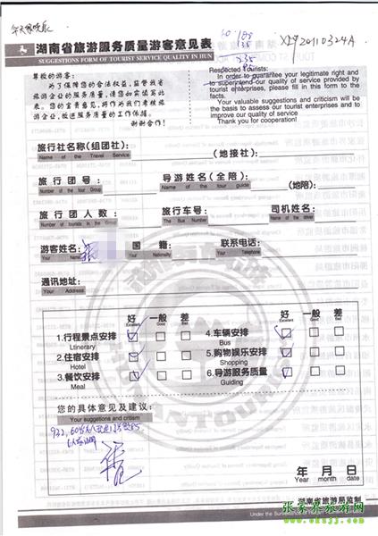 2011年4月5日張先生旅游質量反饋