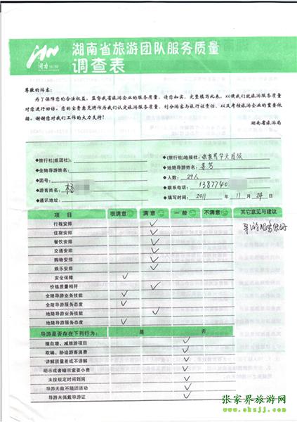 2011年11月24日楊先生一行24人旅游質(zhì)量反饋:導游服務(wù)很好