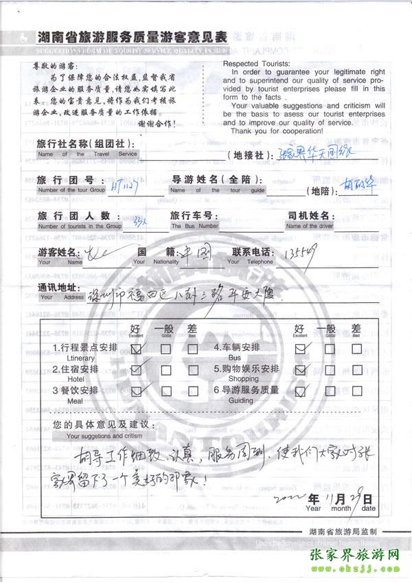 - 游客夏先生為表?yè)P(yáng)導(dǎo)游李姣姣寫(xiě)來(lái)表?yè)P(yáng)信致我張家界... [14811]