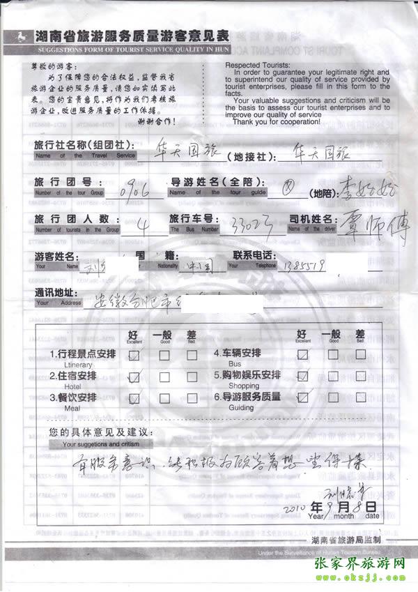 - 游客夏先生為表揚導游李姣姣寫來表揚信致我張家界... [14811]