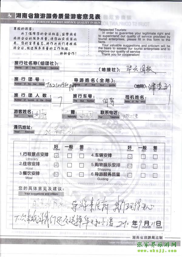 - 游客夏先生為表?yè)P(yáng)導(dǎo)游李姣姣寫來表?yè)P(yáng)信致我張家界... [14811]
