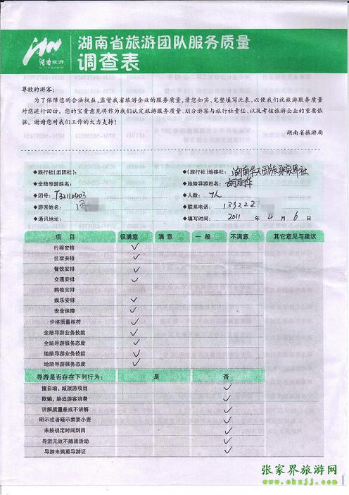2011年4月6日周先生一行7人旅游質(zhì)量反饋