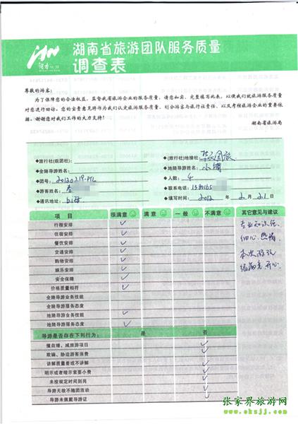 - 6月25日福建邵先生一行12人質(zhì)量反饋單