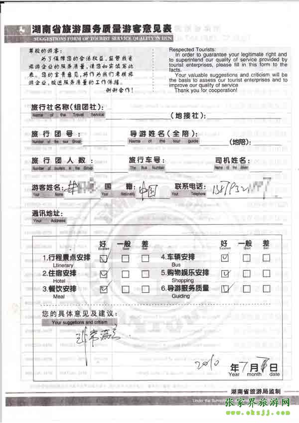2010年7月7日朱先生旅游質(zhì)量反饋:非常滿(mǎn)意