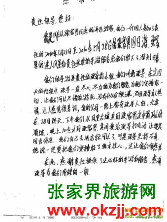 - 游客夏先生為表揚導(dǎo)游李姣姣寫來表揚信致我張家界... [14811]