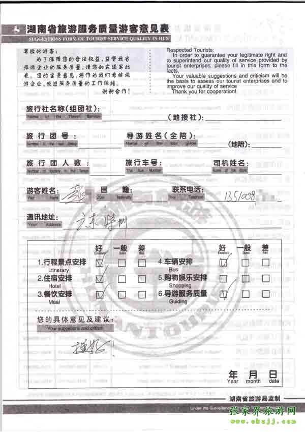 2010年9月15日廣州趙先生旅游質(zhì)量反饋