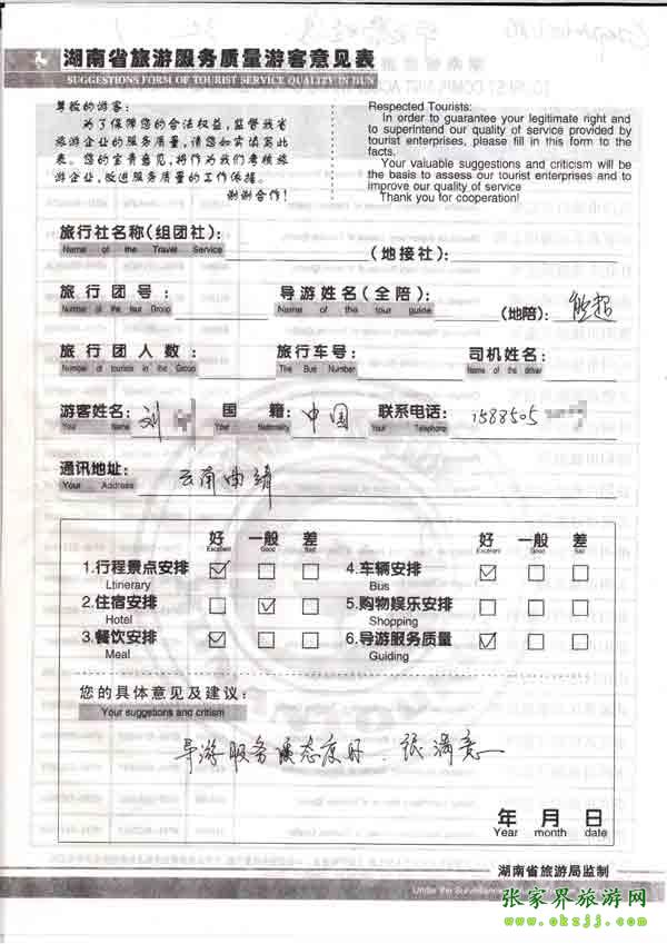 - 游客夏先生為表?yè)P(yáng)導(dǎo)游李姣姣寫(xiě)來(lái)表?yè)P(yáng)信致我張家界... [14811]
