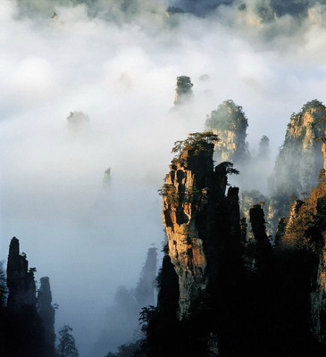 反正第一天和第二天都可以調(diào)換著走,如果自己游,可以第一天看完金鞭溪之后,直接去水繞四門乘百龍電梯去袁家界,也可以爬山到袁家界,看完袁家界之后就住在山上,不過山上的條件沒有山下的好,然后第二天看天子山、十里畫廊,下午有時間的話再看看黃龍洞寶峰湖。