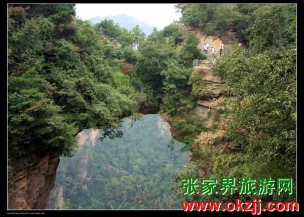 天下第一橋是世界上最搞的天然石橋,橋面寬約兩米,長20余米,絕對高度350米。兩座大山被一條長廊連在一起,形成天然橋。遇見云雨天氣,橋下時常吞云吐霧、云霧翻滾、深不可測,氣勢壯觀雄奇。橋上蒼松挺拔,橋邊古藤垂掛,走在橋上,只見霧氣蒸騰,松濤呼嘯,石橋好像也顫顫悠悠,晃晃搖搖似的,令人驚心動魂。這里是張家界風景一絕,是大自然的一個奇跡,天下第一橋的名號一點也不為過。