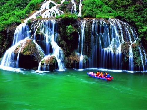 有的地方水流平緩,有的地方則湍急,一個(gè)漩窩接著一個(gè)漩渦,生活在北方的我,還有點(diǎn)暈水,看著覺(jué)的很可怕。澧水兩岸的山峰,郁郁蔥蔥,格外青翠。大自然把一個(gè)個(gè)山峰造就的惟妙惟肖,有的像官帽,有的像默默等候的神女,有的像打坐的觀音,更神奇的是有一座山竟然形成九馬畫山的壯觀。在游覽美麗景色的同時(shí),我們也嘆服大自然的威力。張家界一路都是秀麗的風(fēng)光,讓人目不暇接。 鳳凰古城是個(gè)很小的縣城,因?yàn)樗?a class="insidelink" href="http://m.powuer.com/Scenic/" target="_blank" title="張家界風(fēng)景風(fēng)光">風(fēng)景,吸引了大批的中外游客。鳳凰最繁華的西街,每天都是人頭攢動(dòng),各地的游客給張家界人民帶來(lái)了很好的經(jīng)濟(jì)收入。