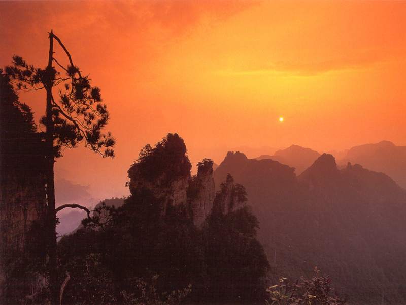 第二天   游覽世界峰林奇觀森林公園—天子山景區(qū):西海、天臺(tái)、仙女獻(xiàn)花、御筆峰、賀龍公園、臥龍嶺、十里畫廊,中途參觀百丈峽,住武陵源索溪峪
